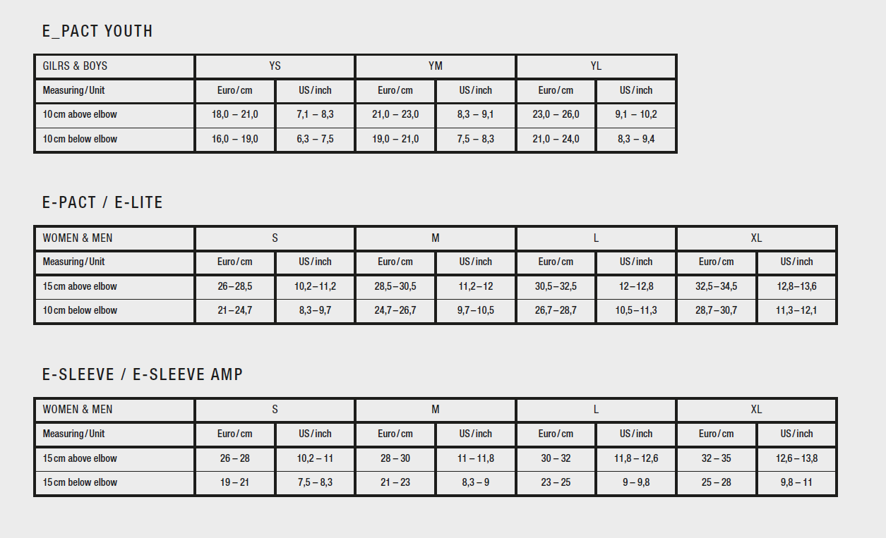 *The following size charts will help you to estimate your individual size. Please consider the chart only as approximate values. For a perfect fit we recommend to try on. For knee and elbow pads we recommend a tight fit in order to ensure the best protection.